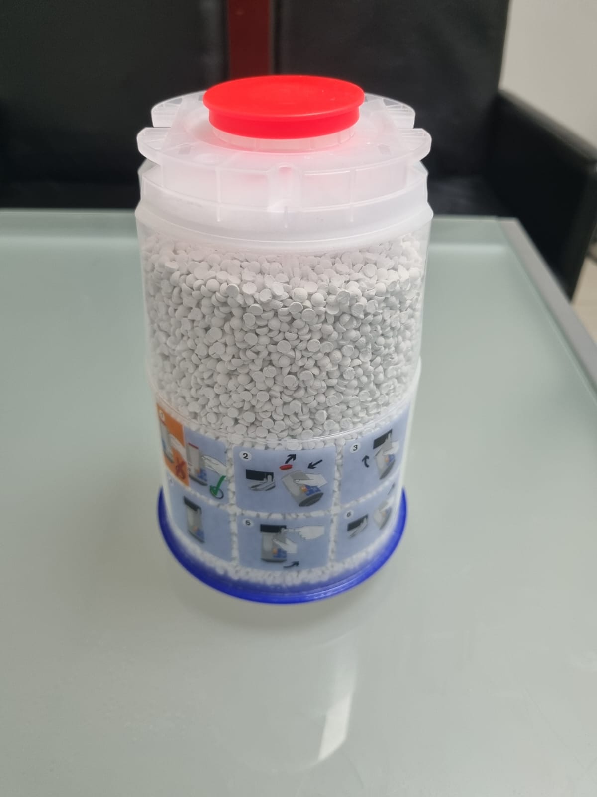 Drägersorb 800+ está disponible en nuestro cartucho desechable Drägersorb CLIC Free y en recipientes rellenables de 5 l.